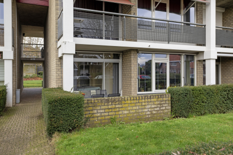 De achtertuin is verzorgd aangelegd en grotendeels onderhoudsarm, met kunstgras en groene borders. De ligging biedt veel privacy en een fijne plek om te ontspannen. Aan de voorzijde is er ruimte om te parkeren op eigen terrein. Tevens is er een strook gemeentegrond in bruikleen waardoor de feitelijke situatie royaler is dan het perceeloppervlakte doet vermoeden.